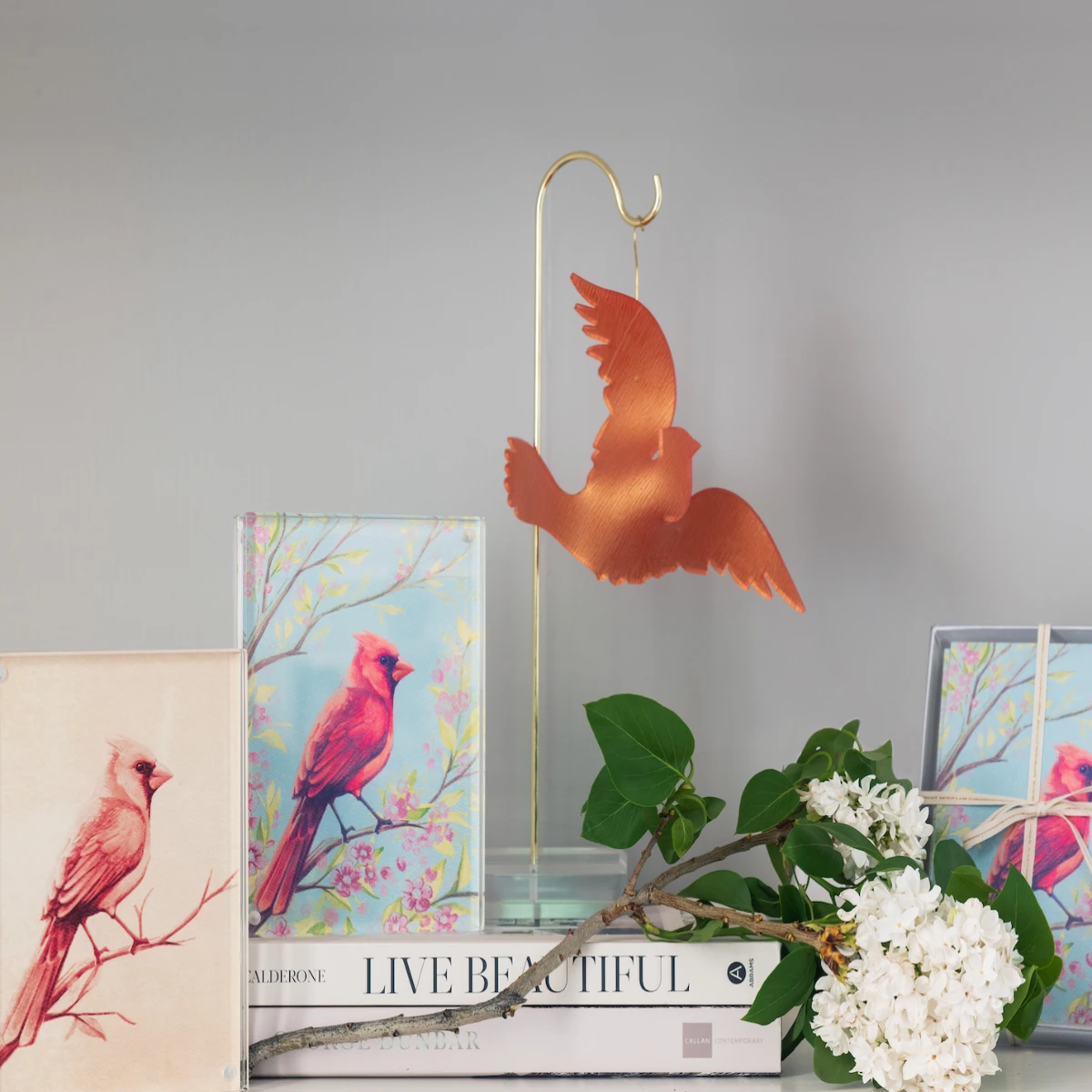 A gift that speaks for itself when words just don’t measure up. Our signature red cardinal is sculptural and lightweight, made of acrylic for durability with a touch of modern style. Each cardinal is hand-painted by Louisiana artist Brad Bourgoyne and is truly a work of art. Use the attached brass hook to hang your cardinal on a wreath, floral arrangement, or our decorative