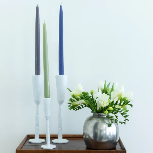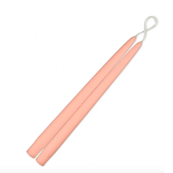 Classic, 12-inch taper candles hand-crafted to be dripless and smokeless, producing a slow, even burn. Their distinct hand-dipped shape pairs beautifully with traditional or modern candle holders, including our