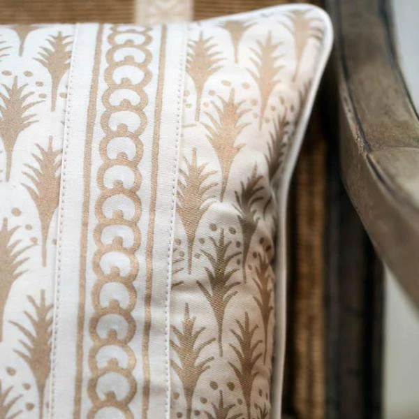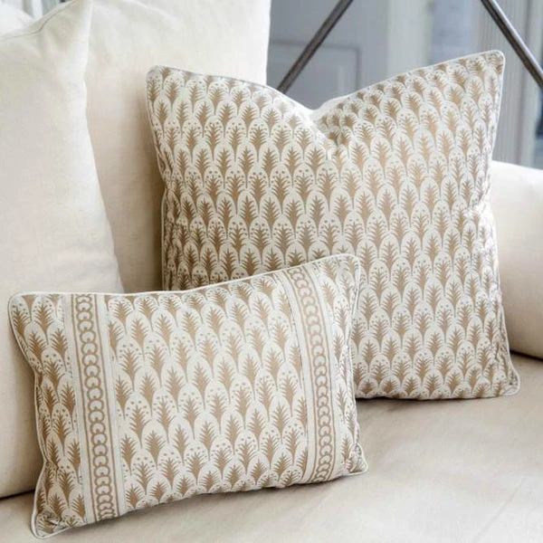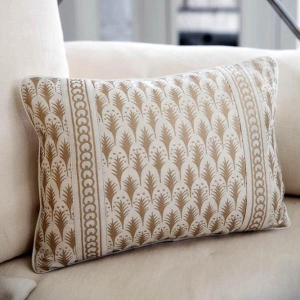 Piumette fabric with a 15th century Persian design of a small feather motif in metallic ivory and gold. Coordinate with the matching