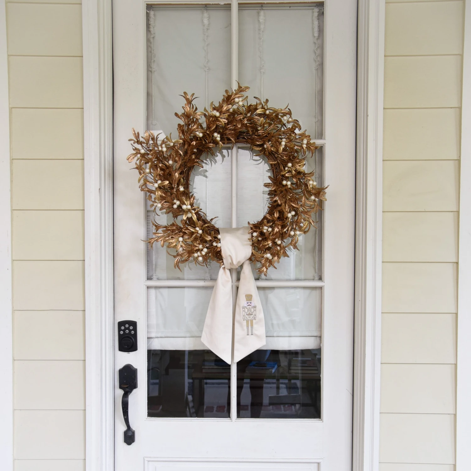The 24″ Gold Metallic Berry Wreath gives a stylish and festive touch to any home. With metallic gold branches and pearl-like, white berries, this gorgeous wreath is perfect for indoors or outdoors from Fall through Christmas. Style with ribbon or a wreath sash.Â