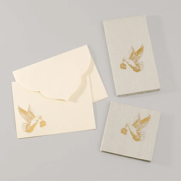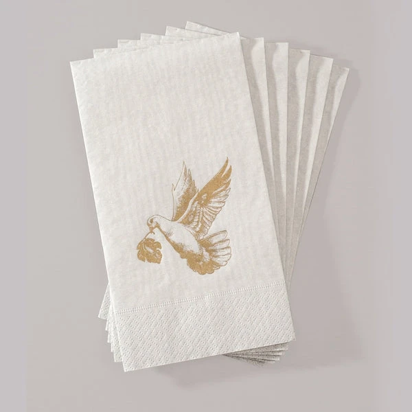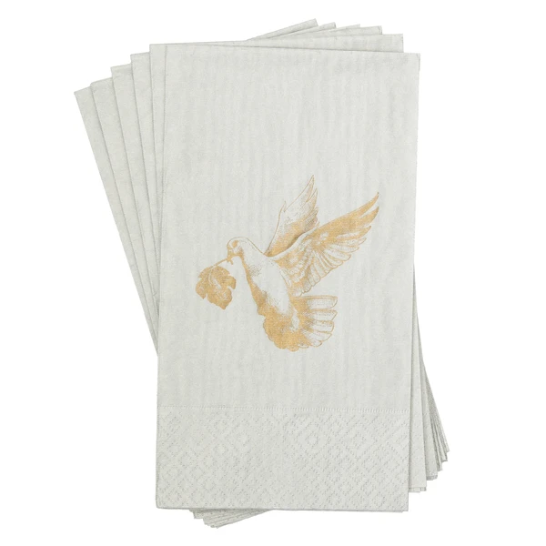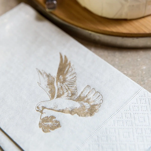 A hand-drawn dove in gold ink adorns these signature hand towels by New Orleans artist Alexa Pulitzer. Keep them in your guest bathroom during the holiday season, or package them with matching