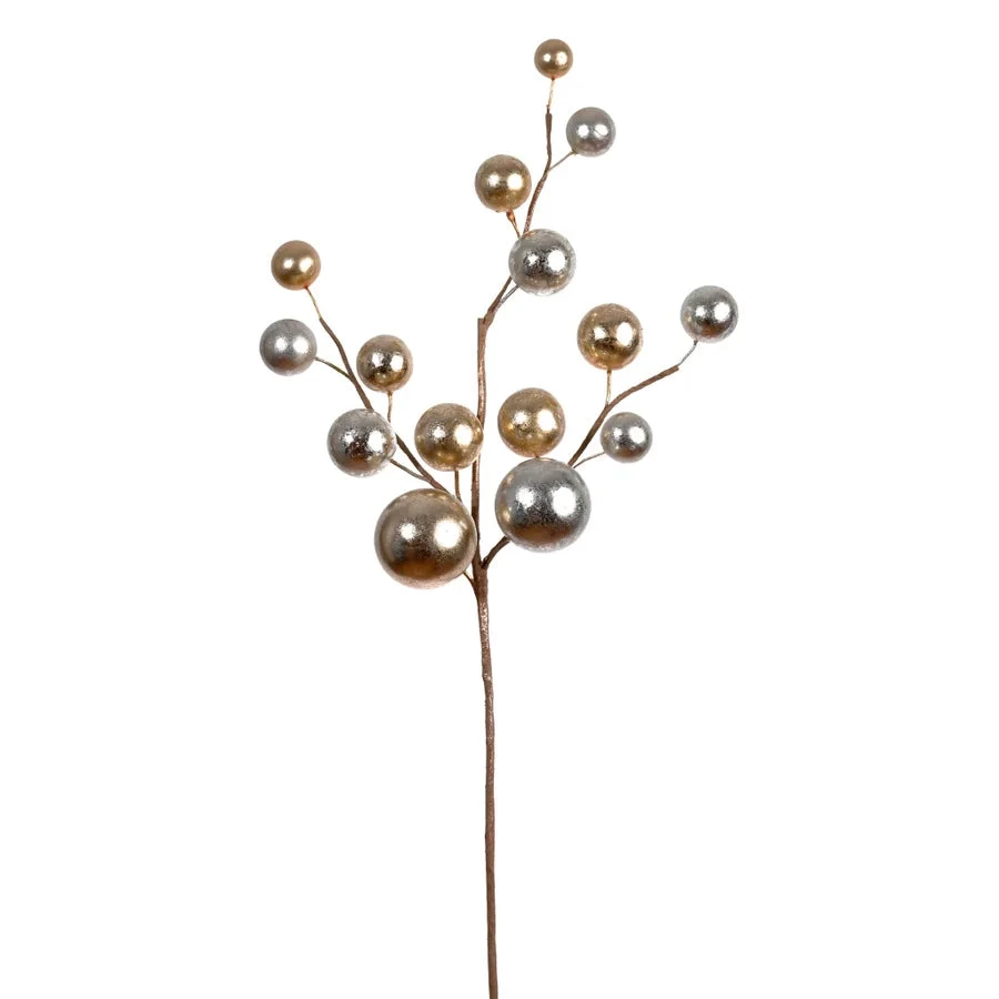 Creating an elegant touch to your seasonal decor with this fabulous Metallic Ball Branch. This unique festive branch will add texture, reflection and the perfect extra layer to your seasonal arrangements and Christmas displays.  Product can be reshaped gently by hand.