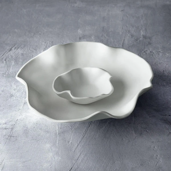 With an artful sculptural shape and satin finish, the Nube collection by Beatriz Ball features white luxury melamine serveware pieces made for everyday use.Â