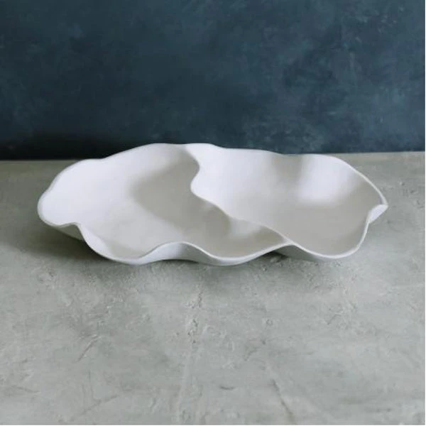 This sophisticated double dip piece is one of the newest additions to the Nube collection. Pair chips and salsa, pita and hummus, or even fruit and cheese for any of your entertaining needs. We love each piece’s rippling lines resemble some of our favorite plaster pieces from high-end designers, with the durability that only luxury melamine can offer!