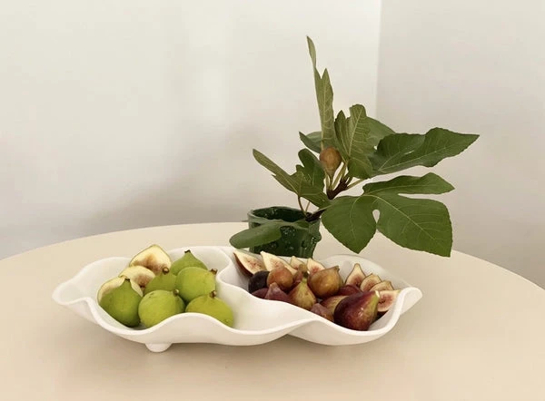 With an artful sculptural shape and satin finish, the Nube collection by Beatriz Ball features white luxury melamine serveware pieces made for everyday use.