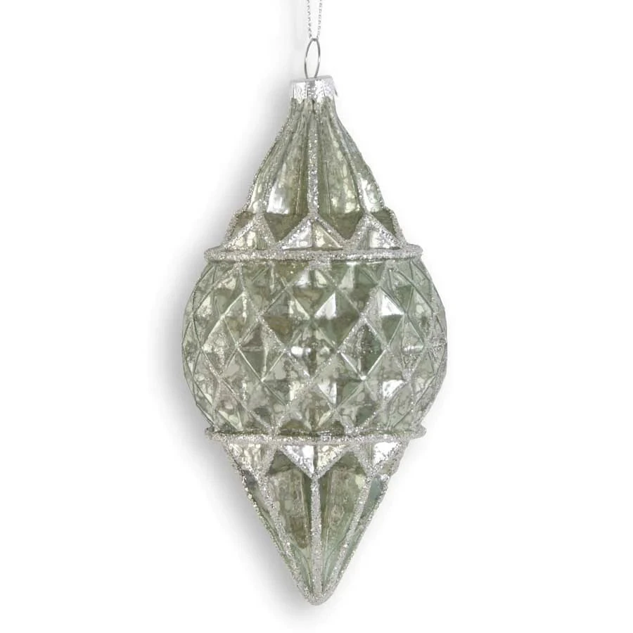 More sage green ornaments to add to our Christmas collection in this color palette. Â We love how this nostalgia-inspiring ornament has a sculptural shape that shines of mercury silver. Â Hang them along your tree or along a garland. Â Each sold individually or in a set of 4Â